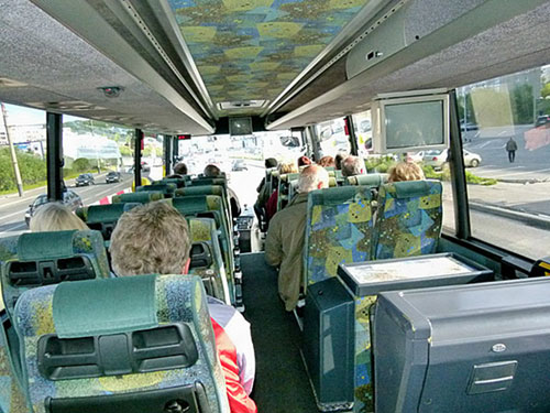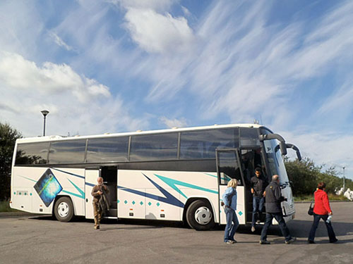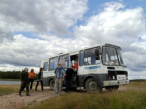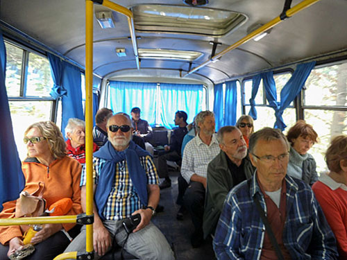 Schönes Wetter : um 10.00 Uhr wurden wir von einem abenteuerlich aussehenden russ. Bus abgeholt und zu