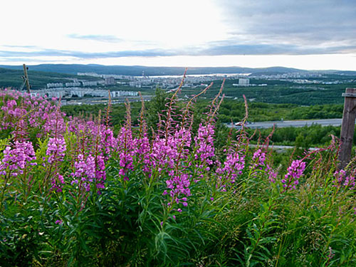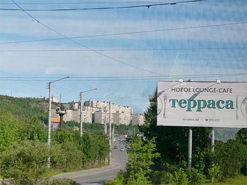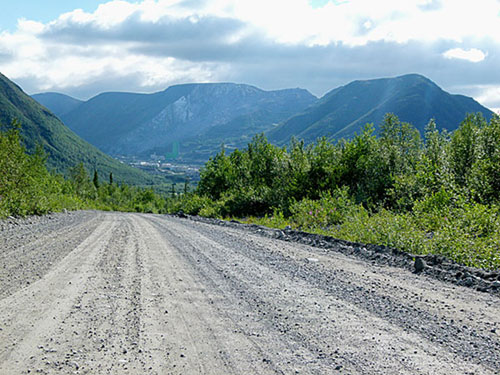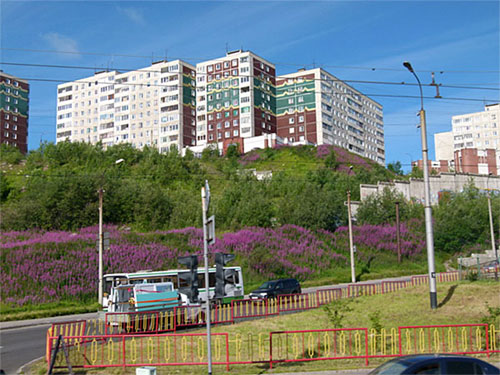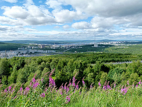 der M 18 durch bis Murmansk; unterwegs bei Montschegorsk viel zerstörte Natur gesehen, weil dort eine