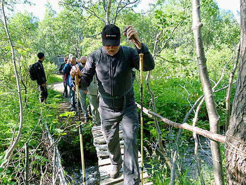 am nächsten Tag wurden wir wieder um 10.00 Uhr von einem Bus abgeholt und wir machten einen Ausflug mit Rucksack und einem Führer in die Bergwelt der Chibinen! Wir bekamen unterwegs Tee und einen