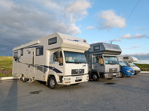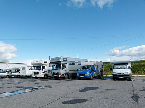 die Skilifte die WoMos schön geparkt; es gibt hier Strom und Wasser und es können die Duschen des Hotels