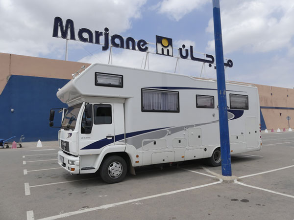 Zusammengepackt, bezahlt und zum Marjane Supermarkt gefahren ( N 34. 029299 W 05. 021445 ) dort eingekauft und