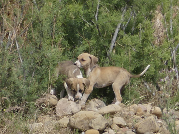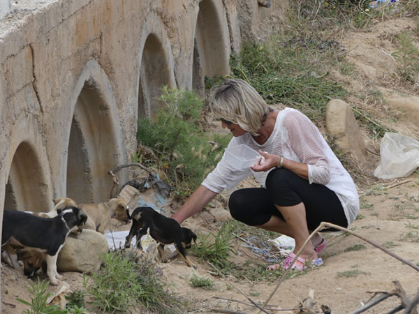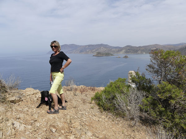 Cala Iris mit Roller zu den Hundebabys nach Torre
