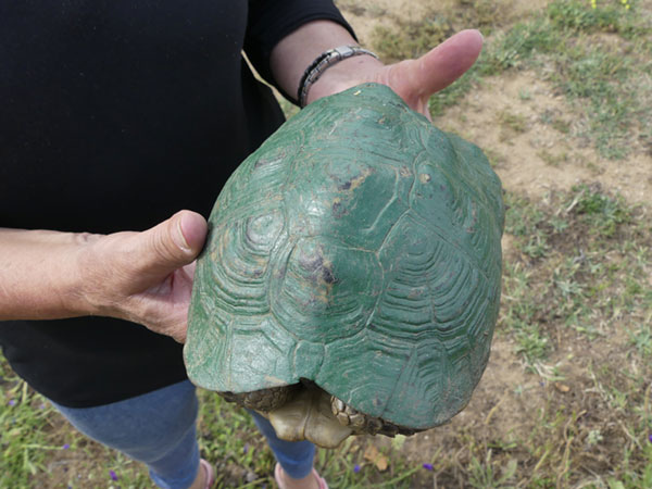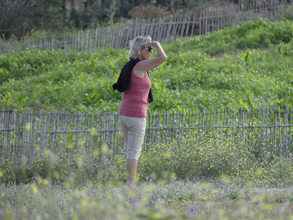 dem Künstler; wir sind die einzigen dort; es ist sehr schön; Pferde weiden zwischen den Terrassen; es gibt Esel sowie Katzen