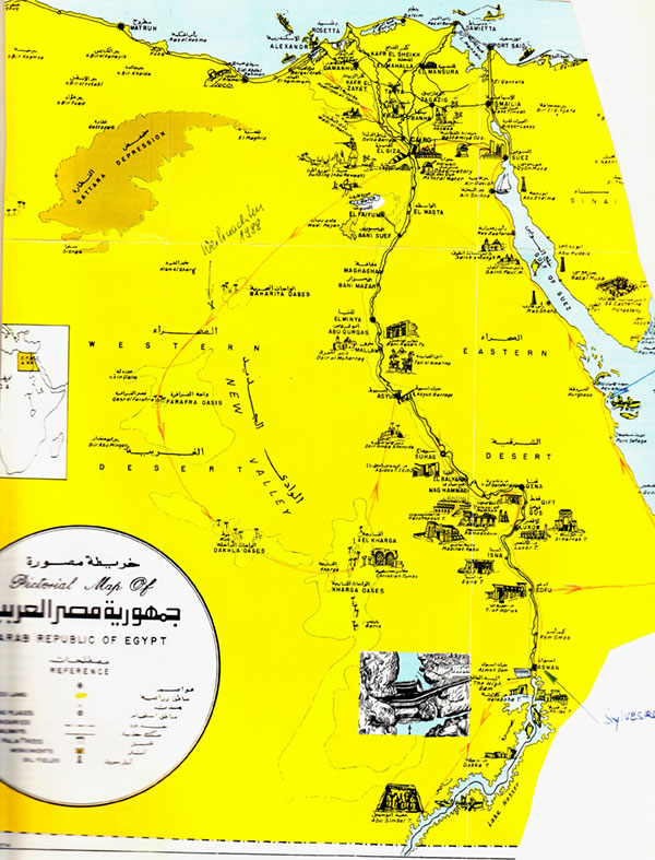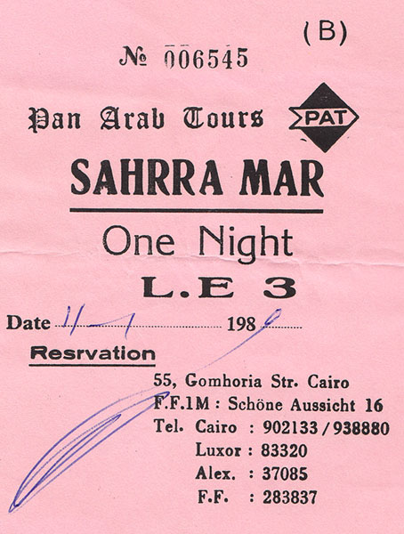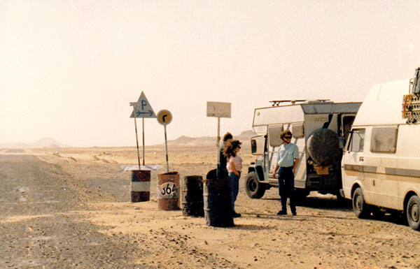 19.12.1988 Ankunft in Alexandria; problemlose Einreise; ägyptische Kennzeichen am Zoll montiert und Versicherung für Ägypten abgeschlossen; dann Richtung Kairo gefahren und auf einem Rastplatz sehr gutes Tahina und Felafel gegessen und am Morgen