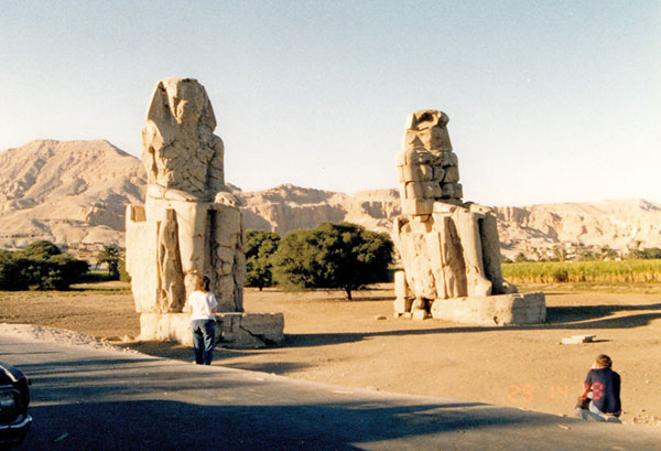 29.12.1988 im Niltal die Dhaus beobachtet und zu den Menemen Kolossen gefahren; diese besichtigt; dann weiter nach Luxor