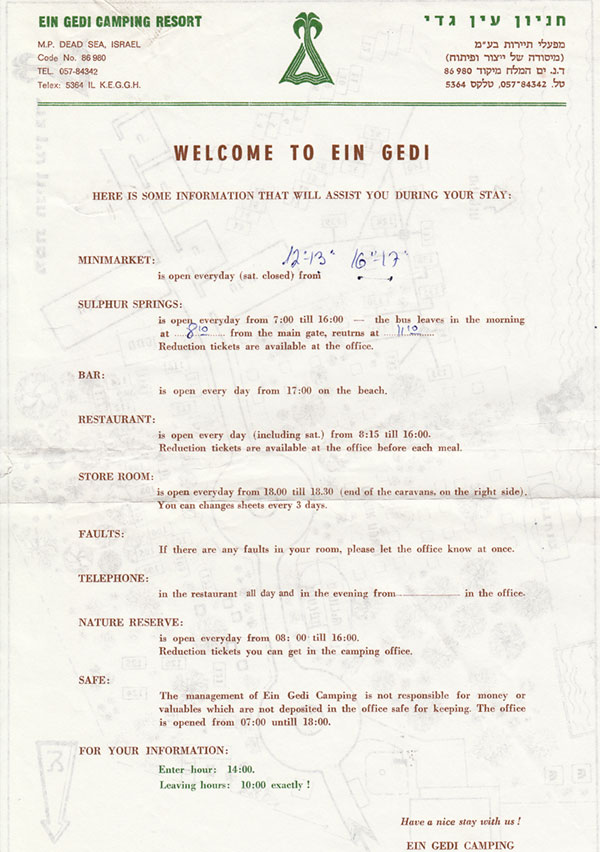 8.11.1989 : Ankunft auf dem "Ein Gedi Campground" am Toten Meer