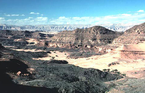 Weiterfahrt durch wild zerklüftete Sinailandschaft, sehr schöne Palmenoasen und ausgewaschene ehemalige Flussbetten bis in den