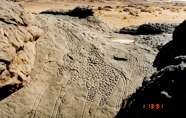 Felszeichnungen mitten in der Sahara in der Nähe des Air Gebirges