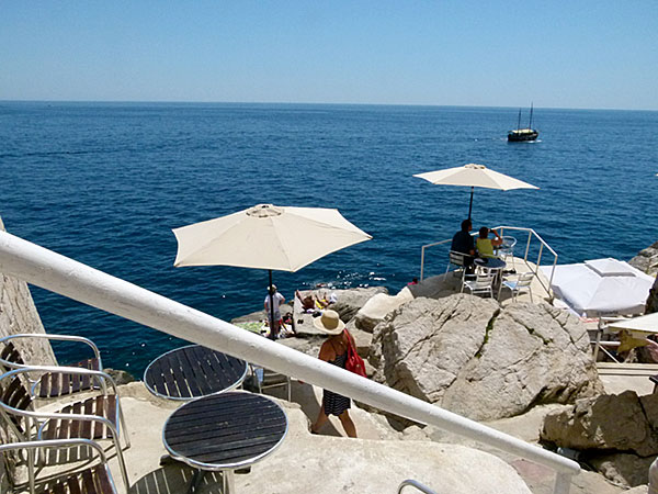 uns begeistert u.a. die tolle Aussicht von hier oben in die Bucht von Dubrovnik; ein Buch gelesen u. dann am späten Nachmittag wieder