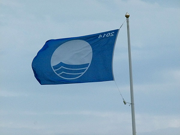 Strandtag am Tropicana Beach; hier weht die blaue Flagge für besonders sauberen Strand und sauberes Wasser;