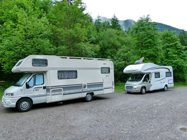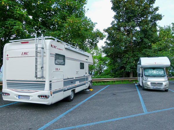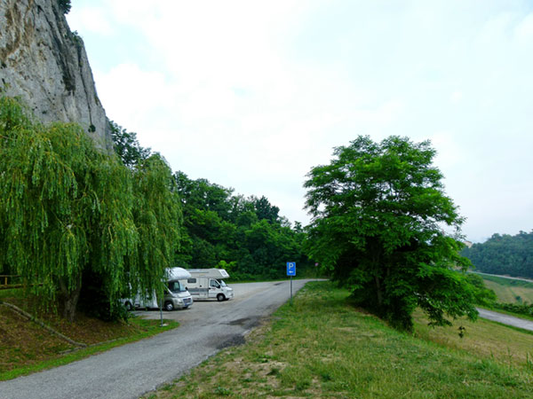 versehenen Straße fahren. Wir entschlossen uns für die Straße und parkten das Womo unter Bäumen auf einem eigens für