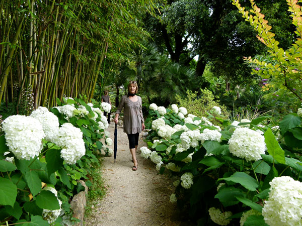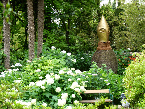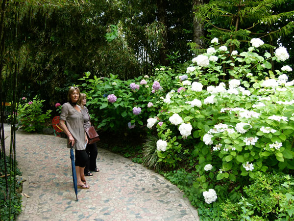 den Skulpturen und den herrlichen Hortensien besichtigt.