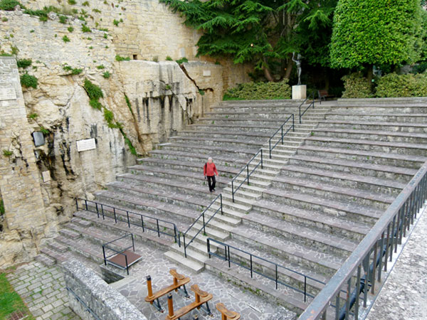 Marino ankommen. Wir stellen das WoMo auf dem Wohnmobilstellplatz in der Via Bigelli ( N 43° 56` 47`` O 12° 26` 54``)