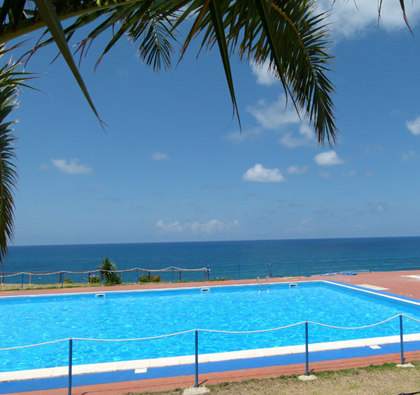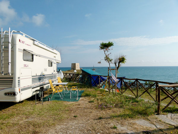 vorhanden ist. Der Platz ist ruhig, direkt am dunklen Lavasandstrand gelegen, mit einem herrlichen Blick bis hinüber nach Kalabrien.