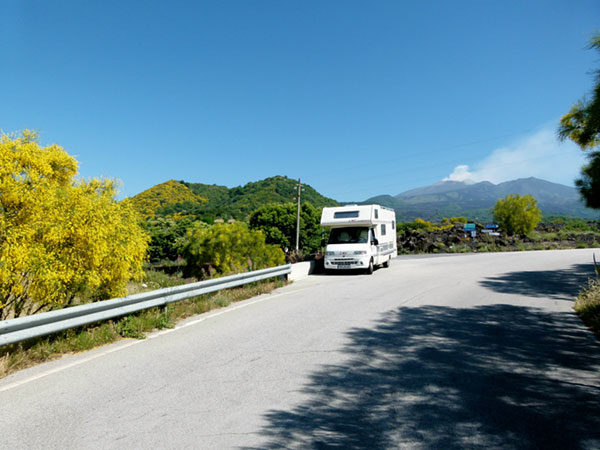 Am Abend dann wieder über Nicolosi den Ätna hinunter und über Catania und Siracusa zum Camping Sabbiadoro bei