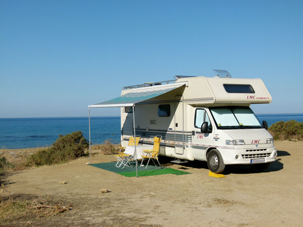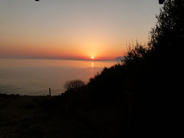sehr schön in einem terrassierten Olivenhain, mit Blick auf das Meer, stehen können. Zum Strand sind es nur ca. 100 m und wir