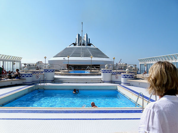 wir konnten im Meerwasserpool an Deck uns abkühlen, im Liegestuhl faulenzen, lesen und etwas gutes trinken, sodaß der Tag