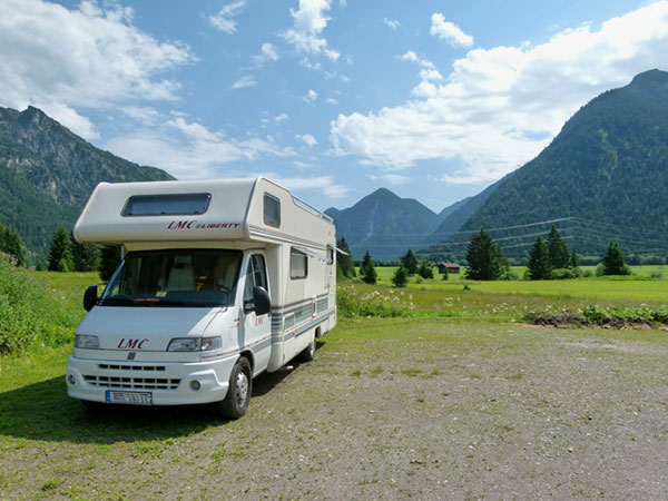 bis zum Wohnmobilstellplatz „Sunnawirt“ in Heiterwang. Dieser landschaftlich sehr schöne Stellplatz bietet Stromanschlüsse, Wasser