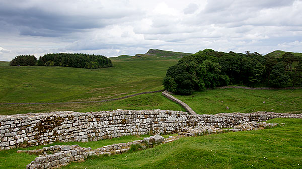 römischen Forts und fahren dann eine Weile immer wieder am Hadrianswall entlang. Die schottische Grenze erreichen wir bei
