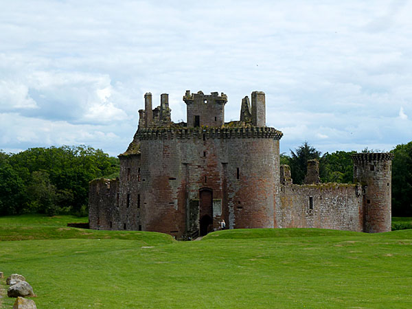 Gretna Green und fahren dann auf kleinen Straßen an Ruthwell mit schönem Friedhof und zum , Caerlaverock Castle wo wir