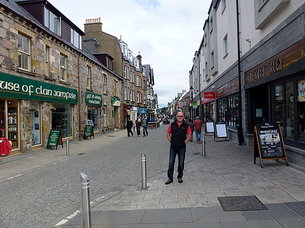 dann ins Whisky-Land. In Grantown on-Spey machen wir kurz Pause. Es ist ein ganz hübsches Städtchen im NP. Wir versorgen