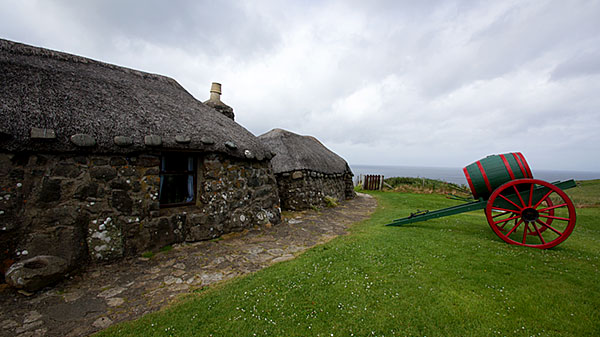 zum Skye Museum of Island Life mit dem Flora Mac Donald Denkmal. Die Wolken werden wieder dichter, wir fahren am Viewpoint Kilt