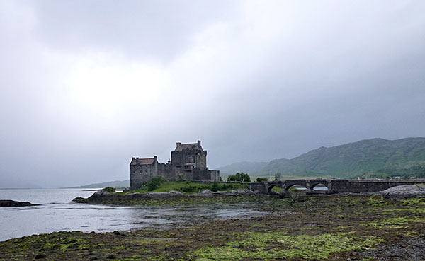 und wollen uns bald einen Stellplatz suchen. Neben dem Eileen Donan Castle finden wir im strömenden Regen einen Campingplatz mit
