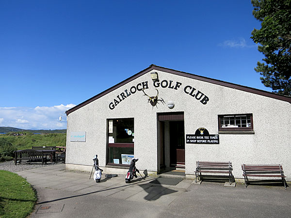 Charlestown melden wir uns auf dem Gairloch-Golfplatz für morgen um 11 Uhr zum Golf spielen an. Hoffentlich wird das Wetter