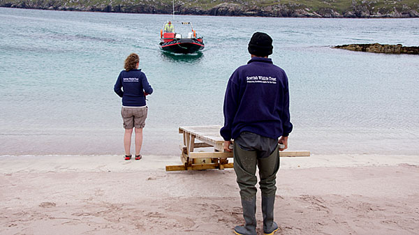 rüber zu der kleinen Insel fahren. Wir landen an einem Sandstrand und werden von einer Guide empfangen, die uns zu einer Hütte