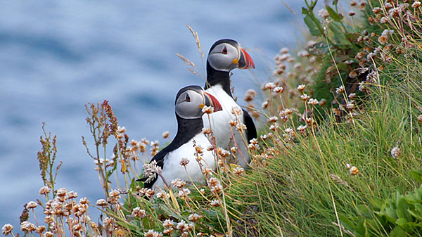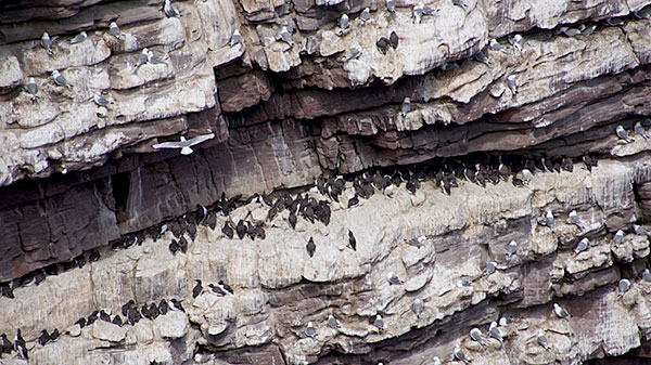 Felsen tausende von nistenden Vögeln, besonders schön sind die Papageientaucher. Wir lassen uns viel Zeit, es macht viel Spaß,