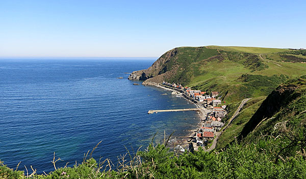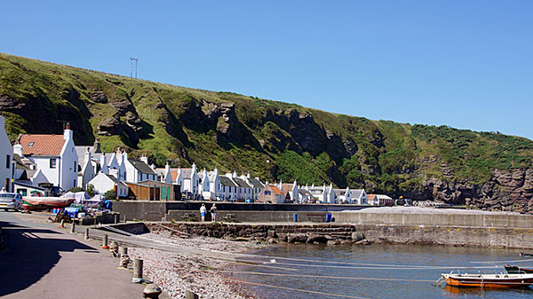 Macduff vorbei und haben dann bei Crovie einen schönen Blick von oben auf die einzige Häuserzeile in einer kleinen Bucht.Oberhalb