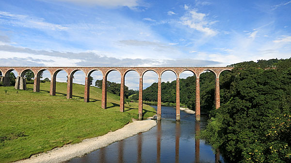 sehr schönes Viadukt. Es ist mittlerweile 27 Grad warm. Bei Melrose fahren wir ab und wollen uns Abercourt, das Anwesen von Sir