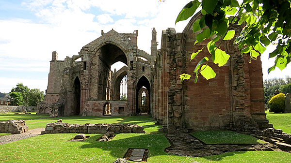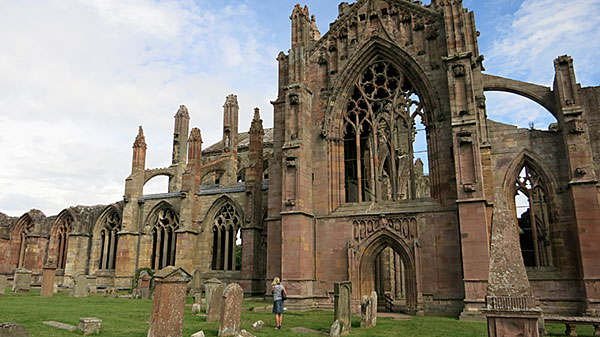 früh und machen deshalb nur eine Aufnahme aus der Ferne. Ein paar km weiter besichtigen wir die Ruine der berühmten Melrose-Abbey,