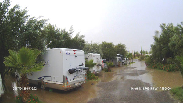 schon alles überflutet; wir konnten einfahren und uns durch das Wasser bis zu einem trockenen Stellplatz durchkämpfen; dann