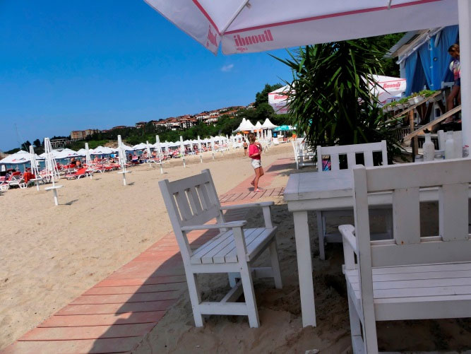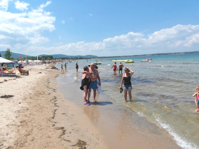 Heute wieder ein Ruhetag auf dem Camping Golden Fish; Strandwanderung gemacht u. gebadet; es ist dort wie Rimini; total voll mit Liegestuhlreihen und Schirmen; das Meer ist sauber und warm; sind mit dem Roller nach Sozopol einkaufen u. zu versch. Geldautomaten gefahren; erst der fünfte oder sechste Automat funktionierte !!