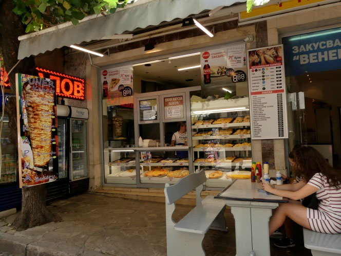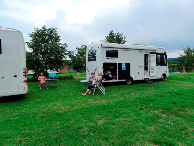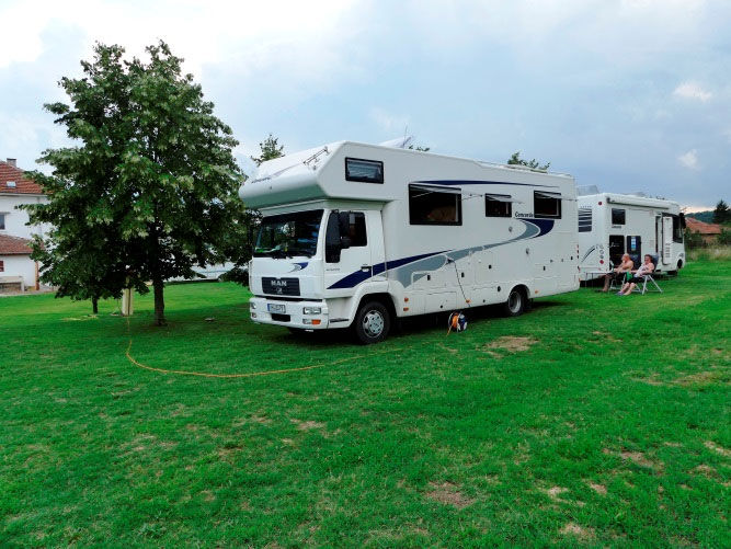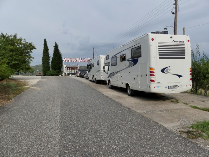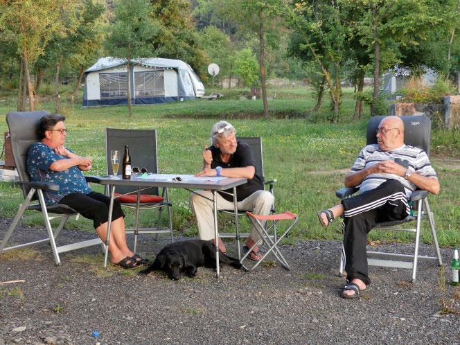 Abends hat es dann etwas geregnet; wir sind auf dem Campingplatz zum Essen; die Eigentümerin hat gekocht; es gab Fleischbällchen, Cevapcici und eingelegte, gegrillte Rippchen; dazu Pommes mit Schafskäse, normale Pommes und Schopski Salat sowie Limo und alkoholfreies Bier; 5,-- €/Person bezahlt und danach noch etwas vor dem WoMo zusammengesessen und bald schlafen gegangen;
