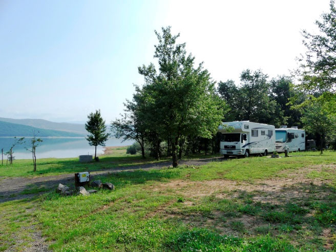 Weiter ging es dann über Burgos ins Landesinnere bis Nova Zagora; dort von der gut ausgebauten Autobahn runter und bis zu einem Stausee auf den Camping Emanuil (N 42.5765 E 25.8873)