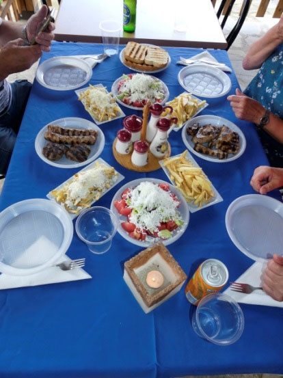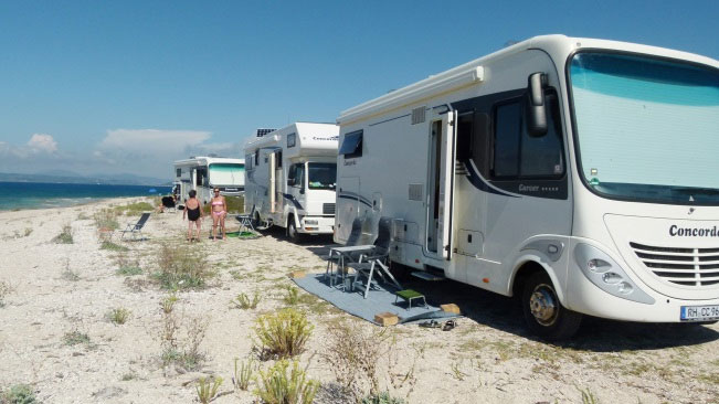 Sind wieder aufgebrochen, weil wir einen Platz mit wärmerem Wasser suchen und sind auf die Insel Lefkas über die Brücke gefahren; kein Stellplatz passte, sodass wir rund um die Insel gefahren sind; in den teilweise, sehr engen Ortsdurchfahrten musste Karin den Verkehr regeln, da sonst nichts mehr gegangen wäre, weil die Touris einfach darauf zu fahren und nicht an uns vorbei gekommen wären; schlussendlich sind wir wieder bei Lefkada auf einer Landzunge gelandet wo schon einige Wohnmobile wild standen und haben uns auch dort dazu gestellt; es war zu bestimmten Tageszeiten dort absolut windig und daher ein idealer Platz für Kiter; haben trotz des Windes gegrillt und gut gegessen; mussten innen sitzen weil außen zu viel Wind war;