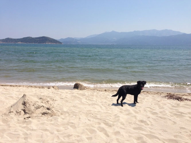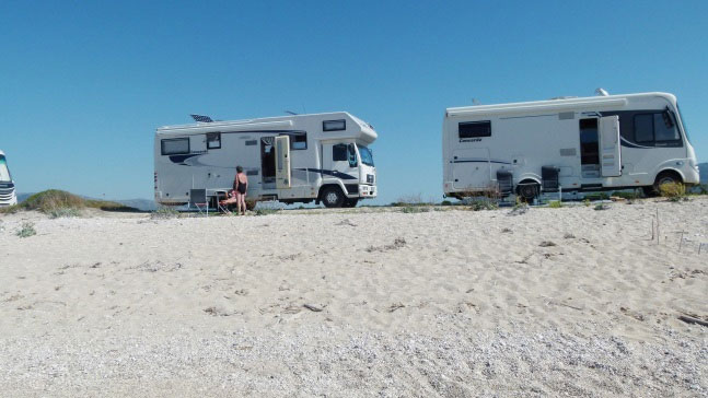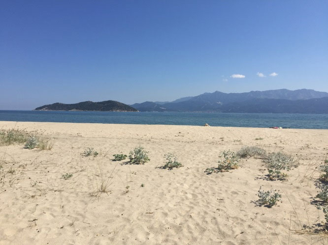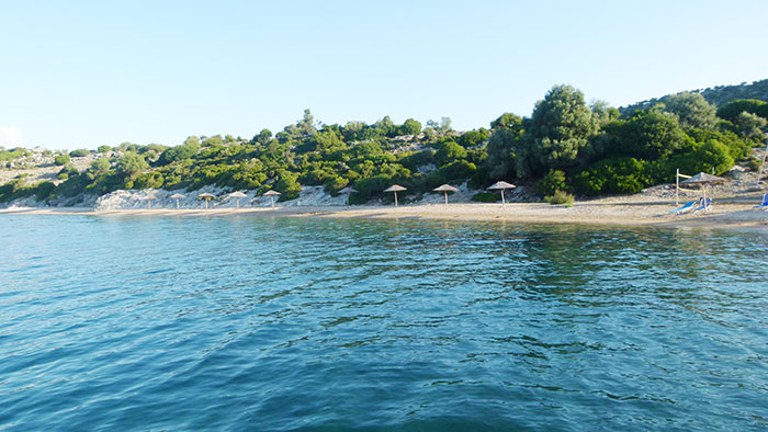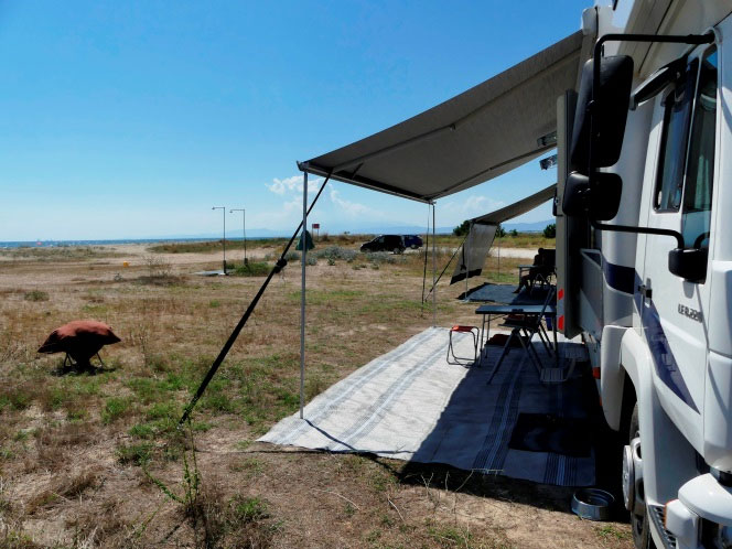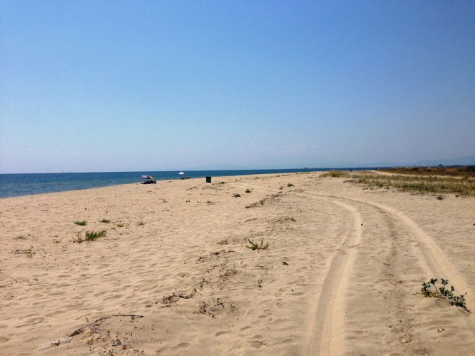 Ausgecheckt und 14,-- € sowie 5,-- € für die Flasche Rotwein bezahlt; der Betreiber des Platzes macht eigenen, guten Rotwein; bei Svilengrad, besser gesagt bei Kapitan Andreovo, über die griech. Grenze; der Grenzübertritt hat gut geklappt; sehr nette Grenzer; sind dann durch das „Armenhaus“ Griechenlands (habe ich gelesen, aber ganz das Gegenteil war der Fall; überall neue Straßen und schöne Häuser); über Orestiada und Didimothio nach Alexandroupoli; dort um 12.30 Uhr das Mittelmeer bzw. die Ägäis erreicht; sind dann bis Keramoti gegenüber der Insel Thasos gefahren und haben uns einen schönen, wilden Stellplatz am Strand mit Süßwasserdusche gesucht; traumhaft !