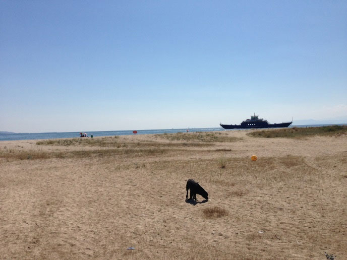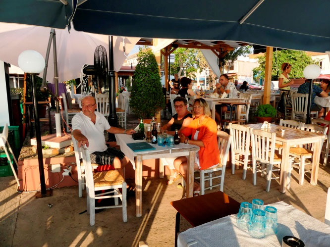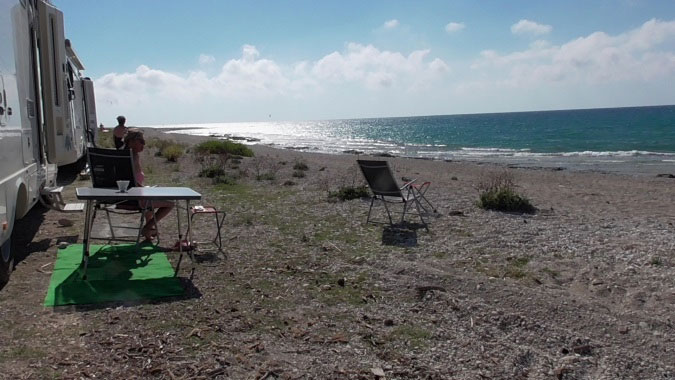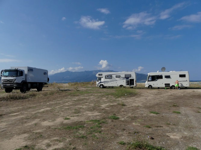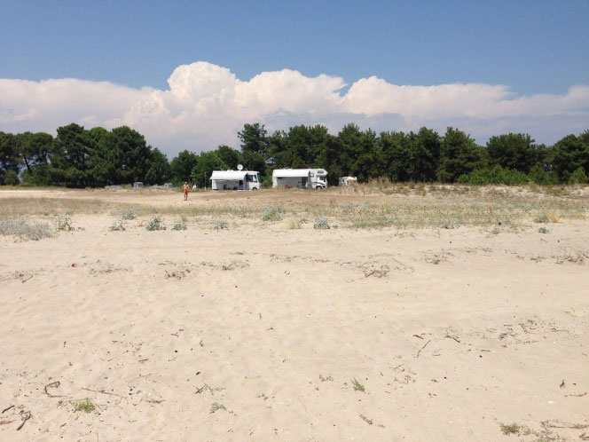 Haben gut geschlafen; fauler Strandtag; Abends mit dem Roller nach Keramoti gefahren und in einer Taverne zu Abend gegessen; am Hafen noch einen griechischen Kaffee getrunken; Nachts kam dann noch ein Hamburger Allradler zu uns auf den Platz;