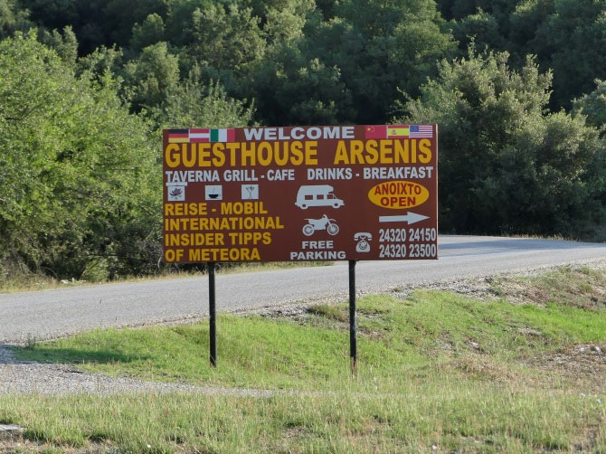 Sind aufgebrochen weil für Karin das Meer nicht klar genug war und weil das Wetter schlechter werden soll; haben für 10,-- €/WoMo auf einem nahen Campingplatz entsorgt (unverschämt aber leider keine andere Möglichkeit gefunden, da wir nichts in die Natur kippen wollten); sind weiter bis zu den Meteora Klöstern gefahren und dort bei der Taverne Arsenis das WoMo abgestellt; ist ein offizieller WoMo Stellplatz; in der Taverne für 11,-- €/Person gut zu Abend gegessen und am nächsten Tag frisches Brot ohne Ende von dem Wirt zum Frühstück bekommen; sehr netter Wirt !
