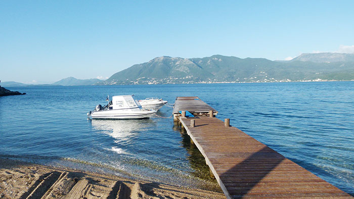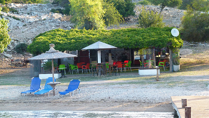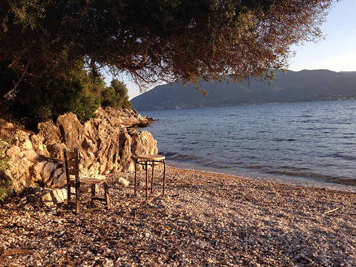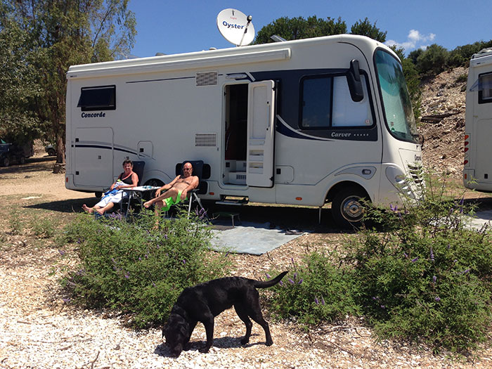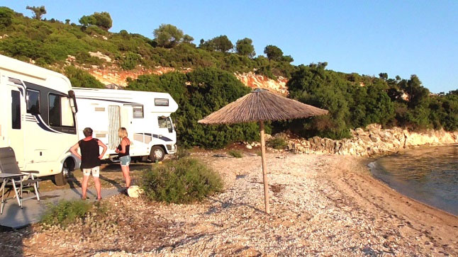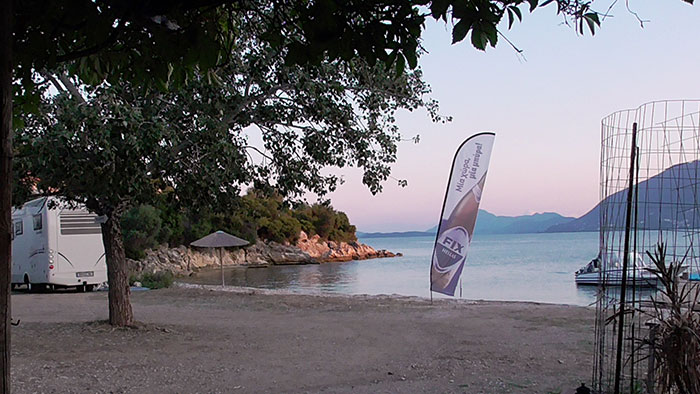 um 14.30 Uhr sind wir dann wieder aufgebrochen Richtung Lefkas; haben einen schönen Stellplatz bei Plagia in einer kleinen Bucht und einer schönen Taverne mit nettem Besitzer gefunden; es war gerade Platz für zwei WoMos unserer Größe; ein Olivenbaum mit Stuhl und Tisch; ein gepflegter Strand; gekühlte Getränke; sehr schönes, glasklares Wasser allerdings eiskalt; was will man mehr ??