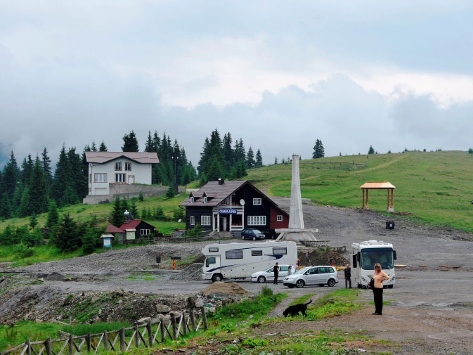 Es gewittert und regnet; daher machen wir keine Fahrt mit der Schmalspurbahn und fahren statt dessen um 10.00 Uhr weiter über den Prislop-Pass bis zu Herrn Fuhrmann nach Botos, in der Nähe von Vatra Dornei; Herr Fuhrmann, den wir noch aus Deutschland geschäftlich kennen, hat dort die Pension „zur Deutschen Eiche“ mit kleinem Campingplatz gebaut; sind um ca. 13.30 Uhr angekommen;