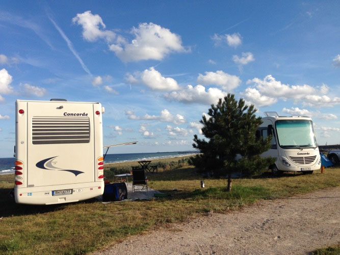 wir mussten uns allerdings auch wieder, nahe einer morgens sehr lauten Straße, einen Platz suchen, da die anderen Wiesenplätze ebenfalls zu aufgeweicht waren; ich dachte ich wäre am Noris-Ring Rennen; es war wieder eine sehr laute Nacht mit wenig Schlaf; Karin und ich sind in das Strand-Restaurant und haben dort gut zu Abend gegessen;
