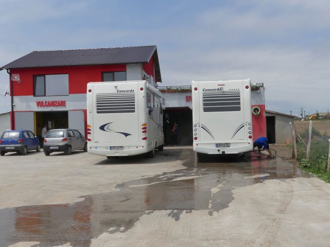 danach sind wir in eine Tankstelle, haben vollgetankt und daneben dann gleich das WoMo für 50,-- Lei waschen lassen; Karin hat sofort Freundschaft mit einem jungen Schäferhund geschlossen;