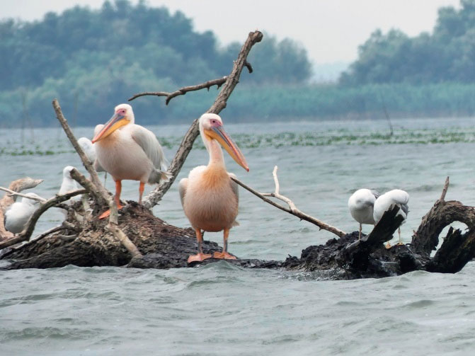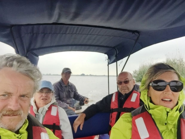 Gewitter ! Karin hatte Angst und wollte nicht schon um 06.00 Uhr bei Blitz und Donner ins Delta; haben daher etwas abgewartet und sind erst um 10.30 Uhr erst los; das Wetter hat sich beruhigt und es wurde sonnig u. warm; mit dem Boot kreuz und quer durch das Delta, 4 Stunden reine Bootsfahrt; wir hatten einen sehr guten Guide und haben viele Vögel (Fischreiher, Pelikane, Graureiher, Eisvogel, Kormorane etc. ) gesehen.