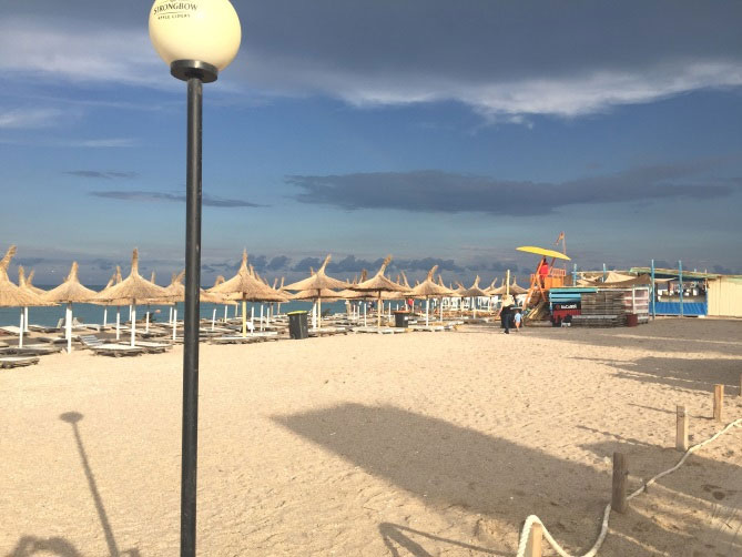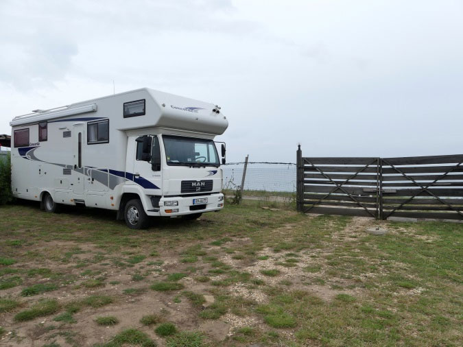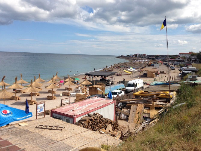 Ausgecheckt u. 40,-- € für zwei Nächte bezahlt und über die gut ausgebaute Autobahn bis nach Constanta ans Schwarze Meer gefahren; dort haben wir dann bei Corbu Beach den Öko-Camping Malul Marii (http://www.malulmarii.ro) N 44.354703 E 28.671693 gesucht und ihn auch nach abenteuerlicher Fahrt, über zum Teil unbefestigte Wege, gefunden; sehr schöner Platz mit Blick aufs offene Meer und den Strand und freie Sicht, das gibt es in Rumänien sehr selten, da alle Plätze in erster Reihe meistens mit Dauercampern voll sind; abends gegrillt; Cristian der Manager ist sehr um uns bemüht !