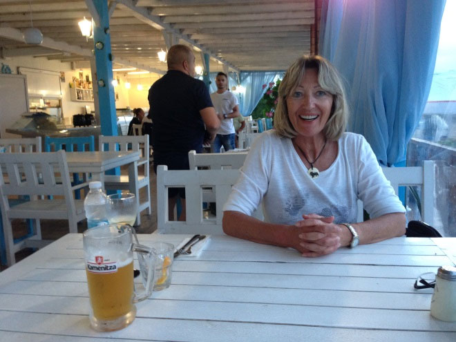 Faulen Tag gemacht; geschwommen brrrr und in der Taverne kaltes Bier und Retsina gekauft; Abends Salat gegessen; heute war es sehr heiss;
